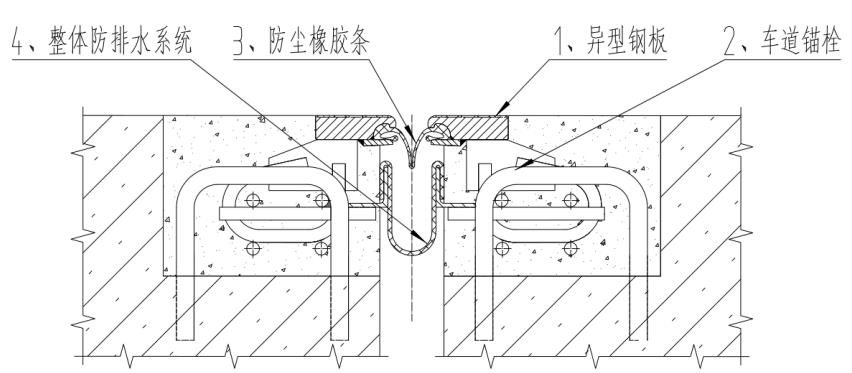 主要由异型钢板、防尘橡胶条、防排水橡胶条、锚固总成组成。