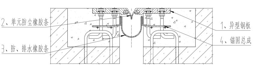 主要由异型钢板、防尘橡胶条、防排水橡胶条、锚固总成组成。