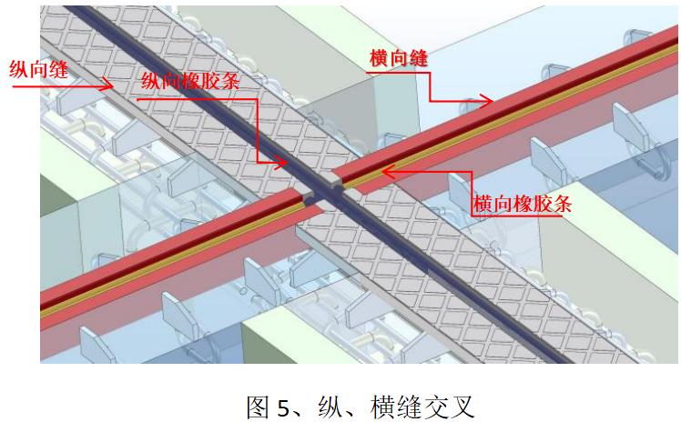 作为纵向桥梁伸缩装置应用时,可保证防水的完整性和可更换性。特别是在纵、横桥梁伸缩装置交叉时,横向桥梁伸缩装置的防水橡胶条需在纵向桥梁伸缩装置处断开,水会在断开处排出,但纵向桥梁伸缩装置下层的防排水橡胶条是整体的,所以我们在施工时可以将横向桥梁伸缩装置的流水引到下层的防排水橡胶条上,从而达到双向防水的做用。